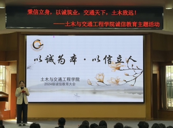 为切实引导学生树立诚信意识、坚守学术底线、筑牢职业根基,营造风清气正的校园生态,11月11日—12日,我院分别于华罗庚馆101教室、真知馆报告厅举办了以“秉信立身,以诚筑业,交通天下,土木致远”为主题的诚信教育主题大会。东南大学成贤学院党委学工部部长、学生处处长施杰,我院相关领导、辅导员老师及2024、2025级全体学生共同参与了此次教育活动。