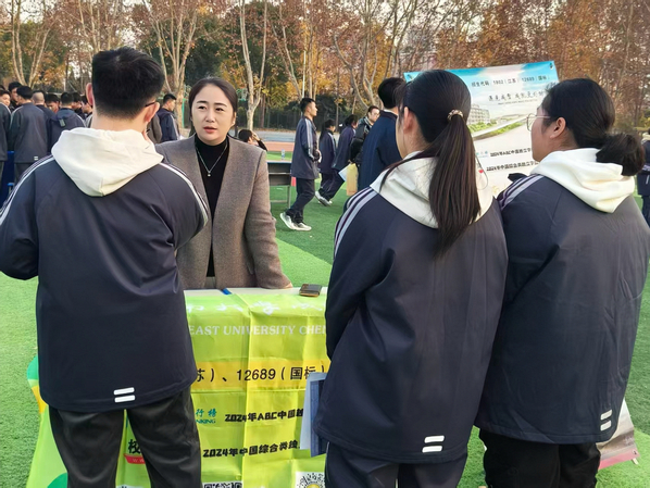 为加强与优质生源基地的深度联动,切实提升学校在宿迁地区的招生影响力,帮助考生及家长科学规划升学路径,11月29日—12月1日,在学生处的指导下,我院党总支书记杨阳带领宿迁地区招生宣传团队,先后赴江苏省宿迁中学、江苏省泗阳中学、江苏省沭阳高级中学、江苏省沭阳如东中学和沭阳建陵中学五所优质高中,开展全方位、多层次的招生宣传工作。